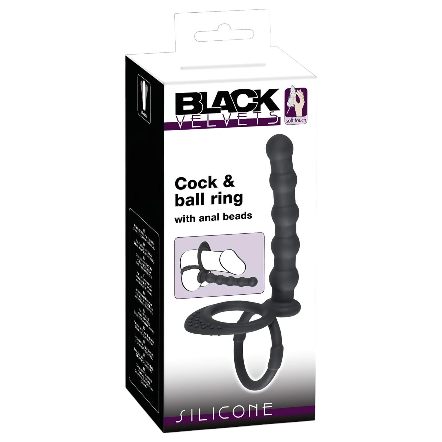 • 1 ks análny dildo s krúžkom na semenníky a penis Black Velvet