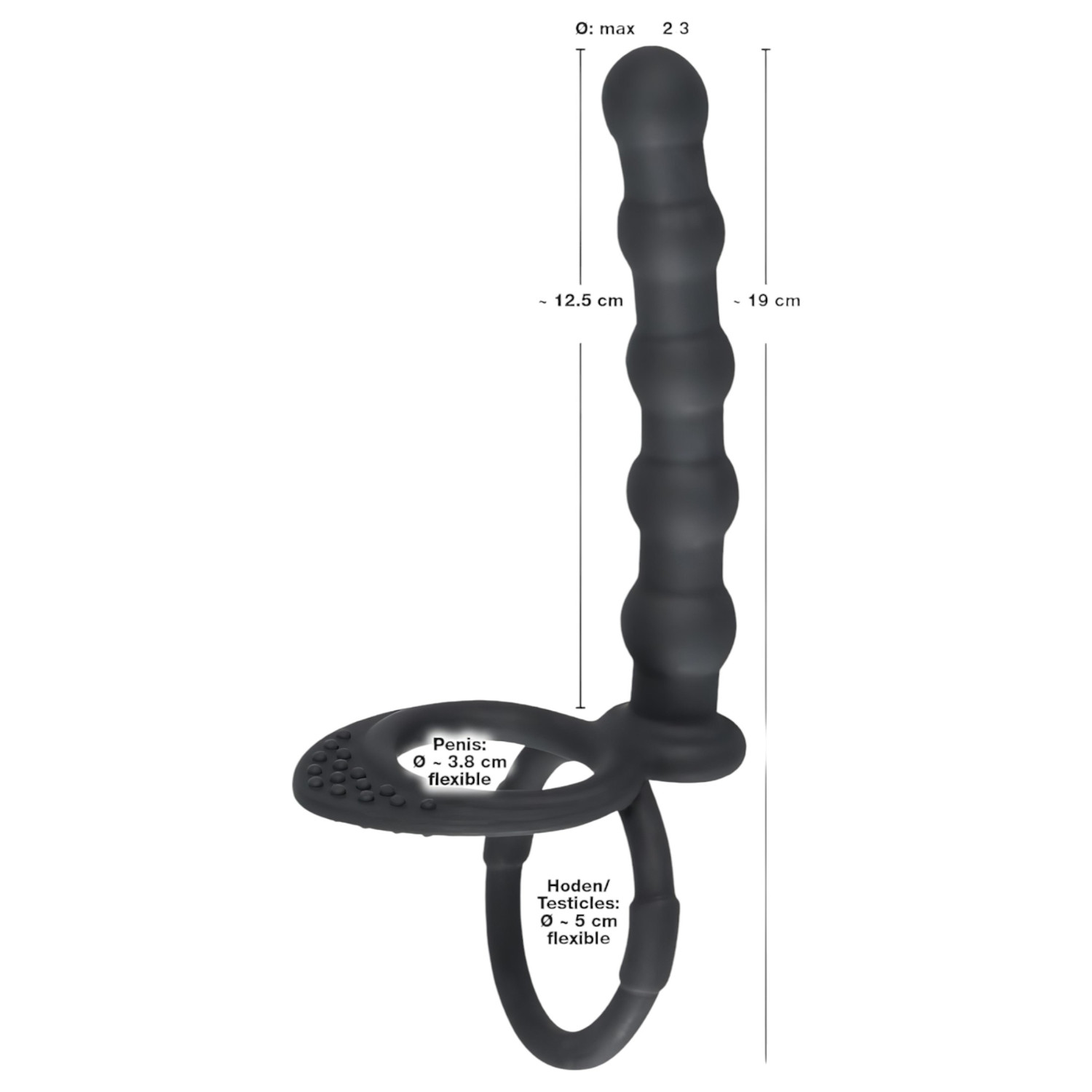 • Vnútorný priemer krúžku na penis: 3,8 cm (pružný)