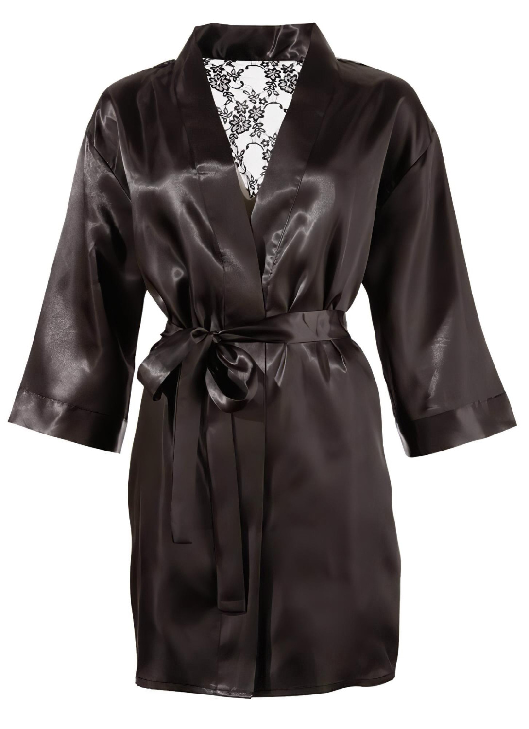 Satenovo-čipkový krátky župan (čierny)